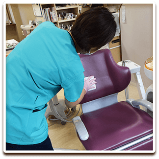 - 患者さんごとの次亜塩素酸水による診察台の清拭による消毒